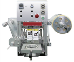 ●各種容器のフタシールを熱貼付(シール)する半自動機械です。